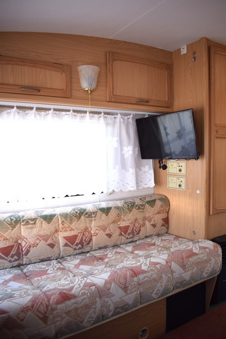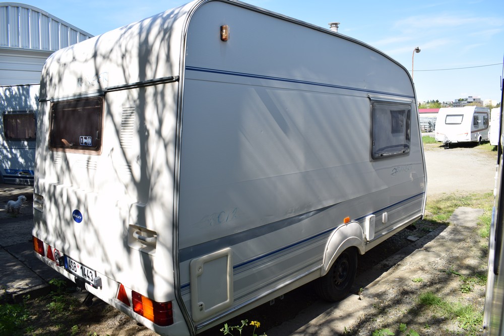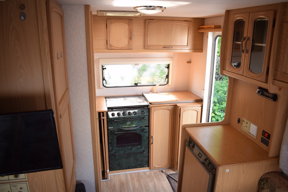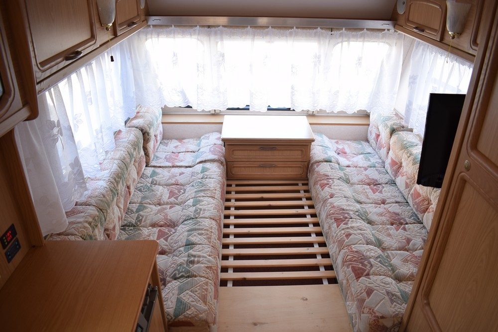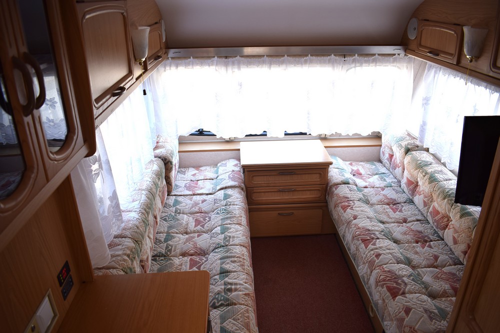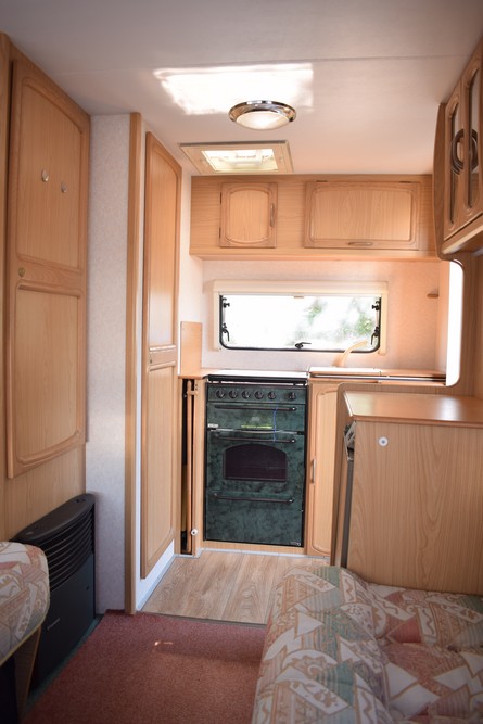 Dvoulůžkový anglický obytný přívěs v pěkném stavu. Rok výroby 2000. Hmotnost pouze 1 000 kg. Vpředu je sezení proti sobě, vysunutím roštu lze jednoduše a rychle rozložit na dvojlůžko. V zadní části se nachází kuchyňka s velkým sporákem, plynovou troubou, grilem, a dřezem. Uprostřed je koupelna s umyvadlem, vytahovací sprchou a wc. Naproti je ledníčka s mražákem. Karavan je vybaven vlastní trakční baterií 12 V - 100 Ah, solárním dobíjením a má předstan.