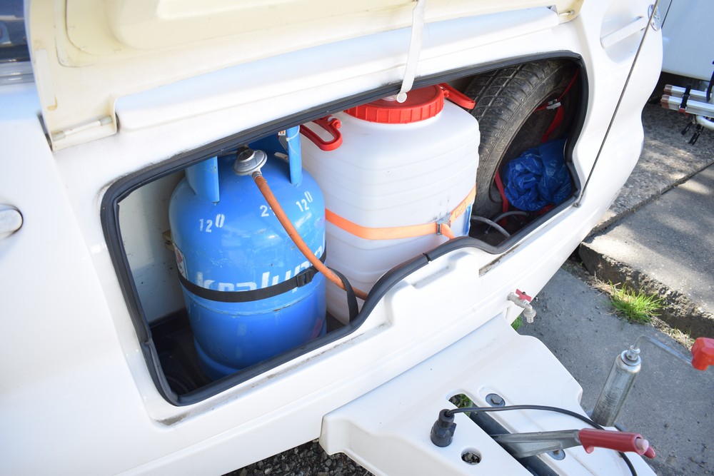 Ohřev vody: karavan je vybaven kombinovaným bojlerem TRUMA (plyn + 220V). Tento typ bojleru činí karavan nezávislým na připojrní k 220V. Vodu lze ohřát kdekoliv mimo kemp. Kapacita bojleru je 10 litrů, bojler je průtokový a plně automatický. Při ohřevu vody plynem lze regulovat teplotu vody (30 až 70 stupňů).