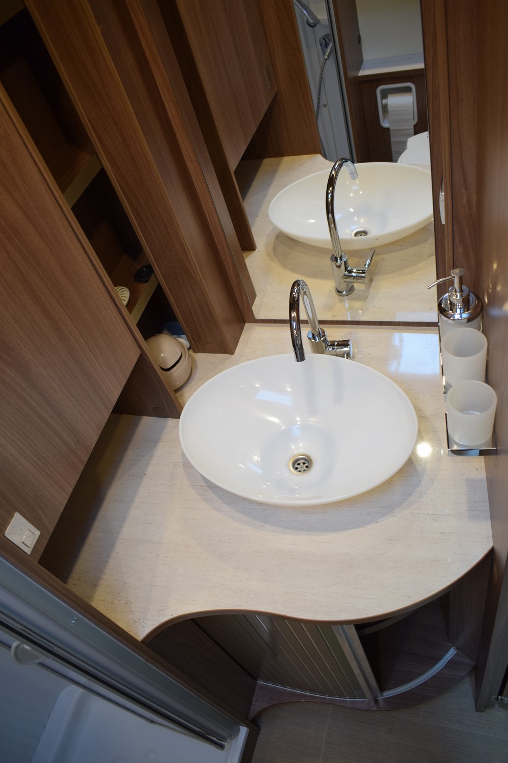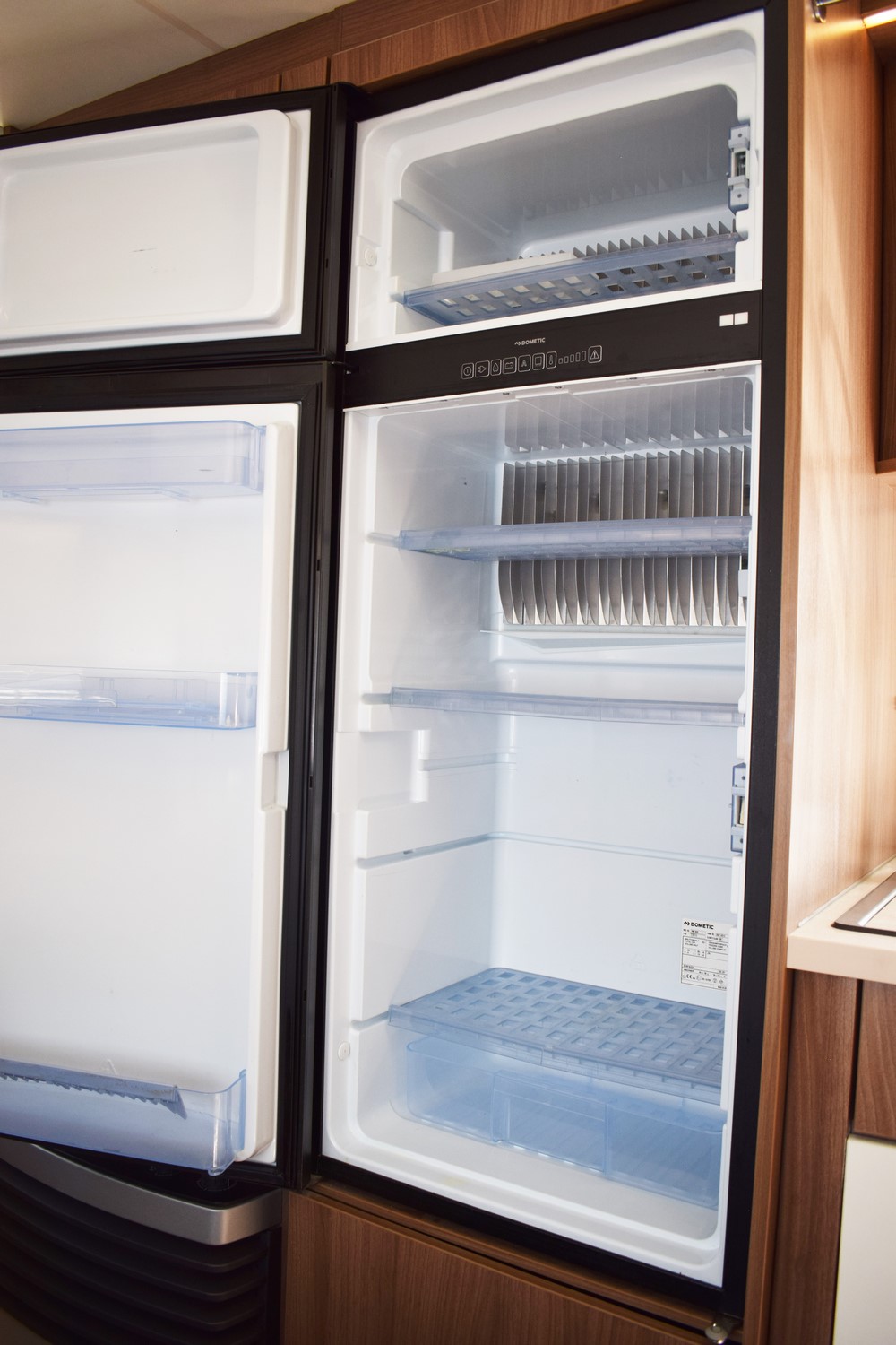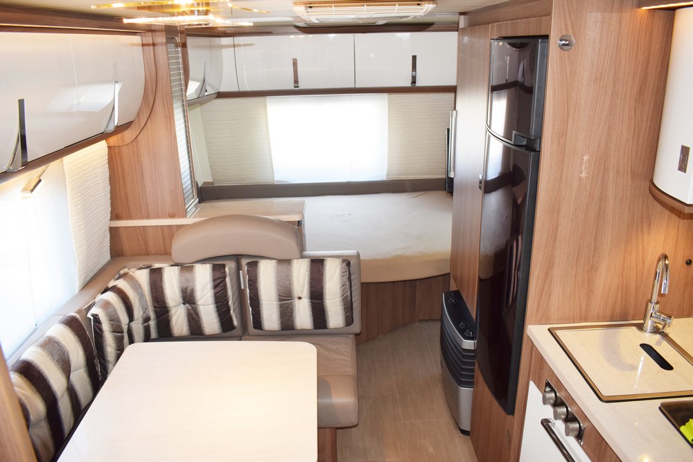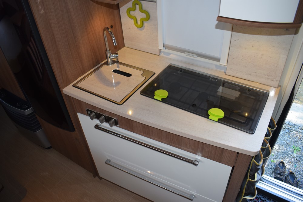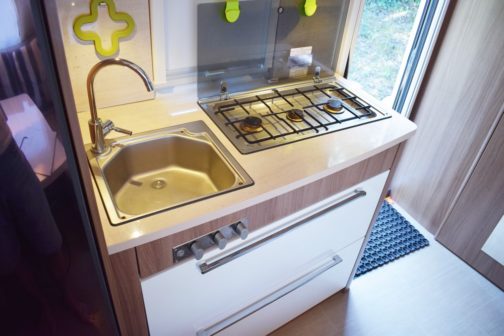 Kuchyň: dřez se studenou a teplou vodou, vařič se 3 plynovými hořáky, lednička 154 l s mrazícím boxem 30 l. Lednička umí pracovat v automatickém režimu, kdy si sama zvolí dostupný zdroj energie (plyn, 220V, 12V)
