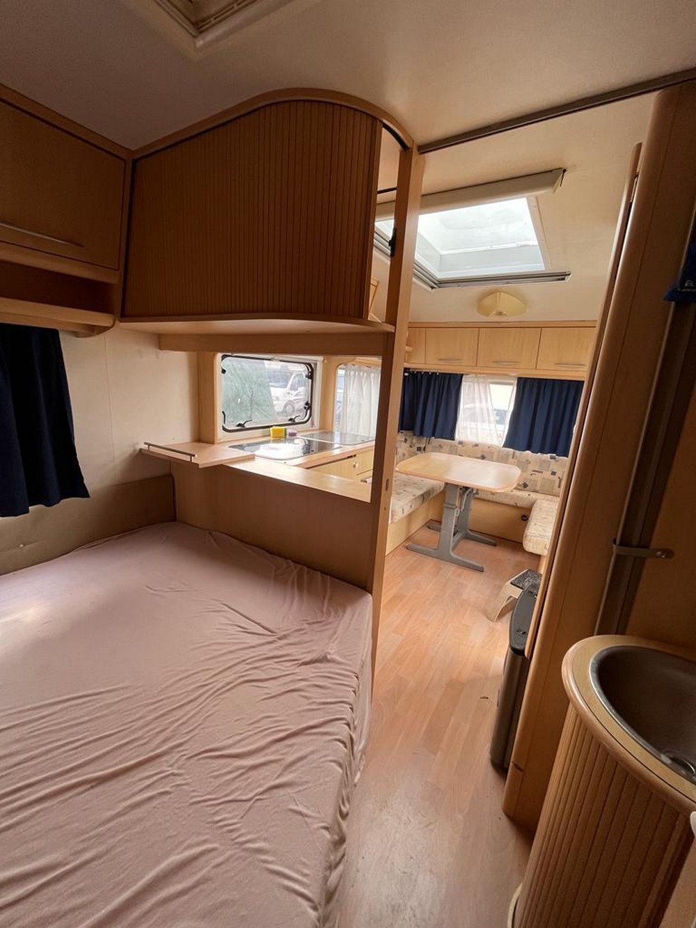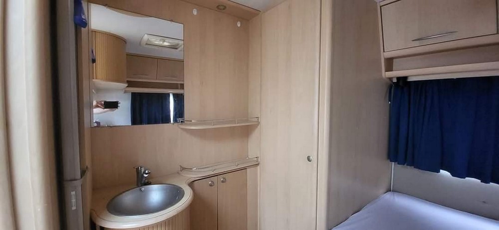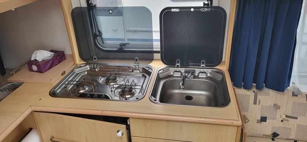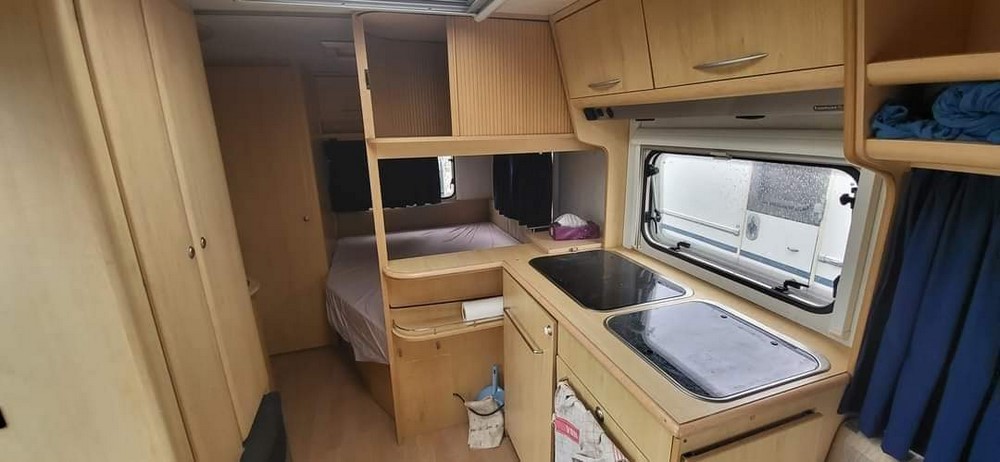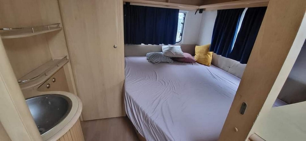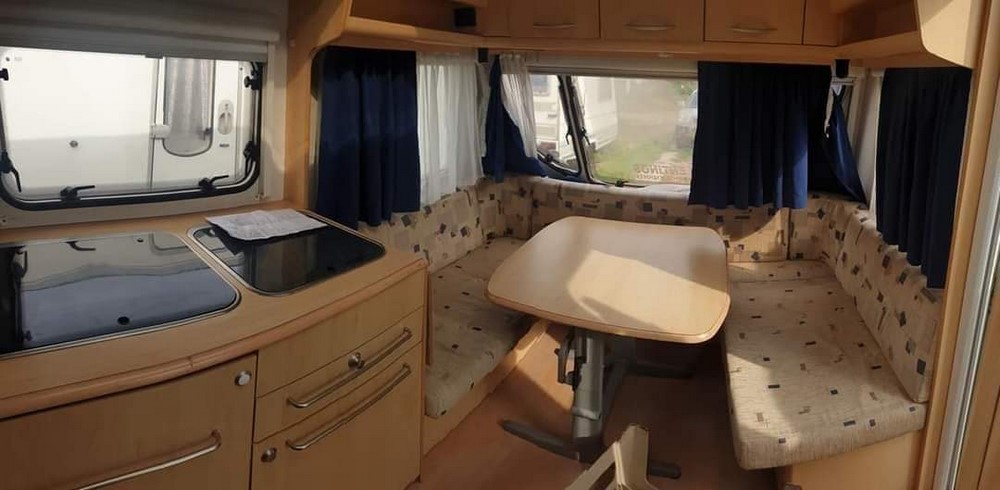 Čtyřlůžkový obytný přívěs střední velikosti. Vpředu je sezení ve tvaru U, jednoduše rozložitelné na dvojlůžko. Vzadní části se nachází pohodlné fixní dvoulůžko. Vedle fixního lůžka je koupelna se sprchou a wc. Kuchyňka se sporákem, dřezem a ledničkou se nachází ve střední části. Extra výbava: servisní baterie 90 Ah + nabíječka 220V, sluneční střecha, zimní zakrývací plachta, nosič kol. STK platná do 06/2024.