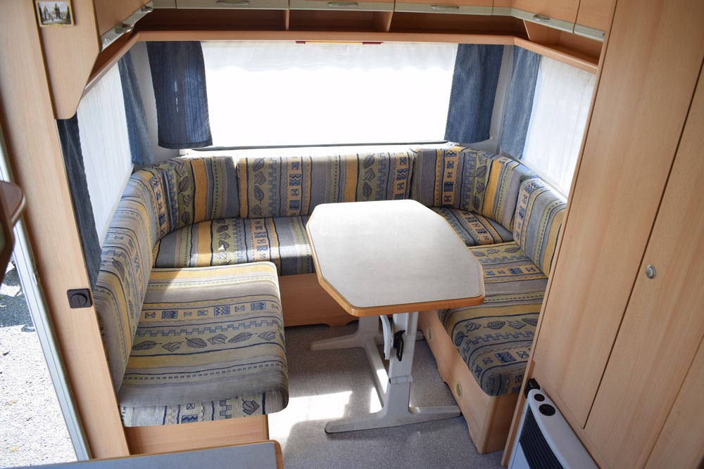 Čtyřlůžkový, lehký, jednoduše vybavený obytný přívěs po prvním majiteli (koupen nový v ČR). Vpředu je sezení proti sobě, jednoduše rozložitelné na dvojlůžko. Toto dvojlůžko lze ponechat trvale rozložené jako fixní. Vzadní části se nachází druhé sezení ve tvaru podkovy s velkým skládacím stolem. Zadní sezení lze také jednoduše rozložit na dvojlůžko. Kuchyňka se sporákem, dřezem a ledničkou se nachází ve střední části. Naproti kuchyňce je koupelna s WC, umyvadlem a sprchou. Karavan je zkontrolovaný našim servisem, je suchý, v zachovalém stavu, veškeré zařízení je plně funkční. STK platná do 06/2024