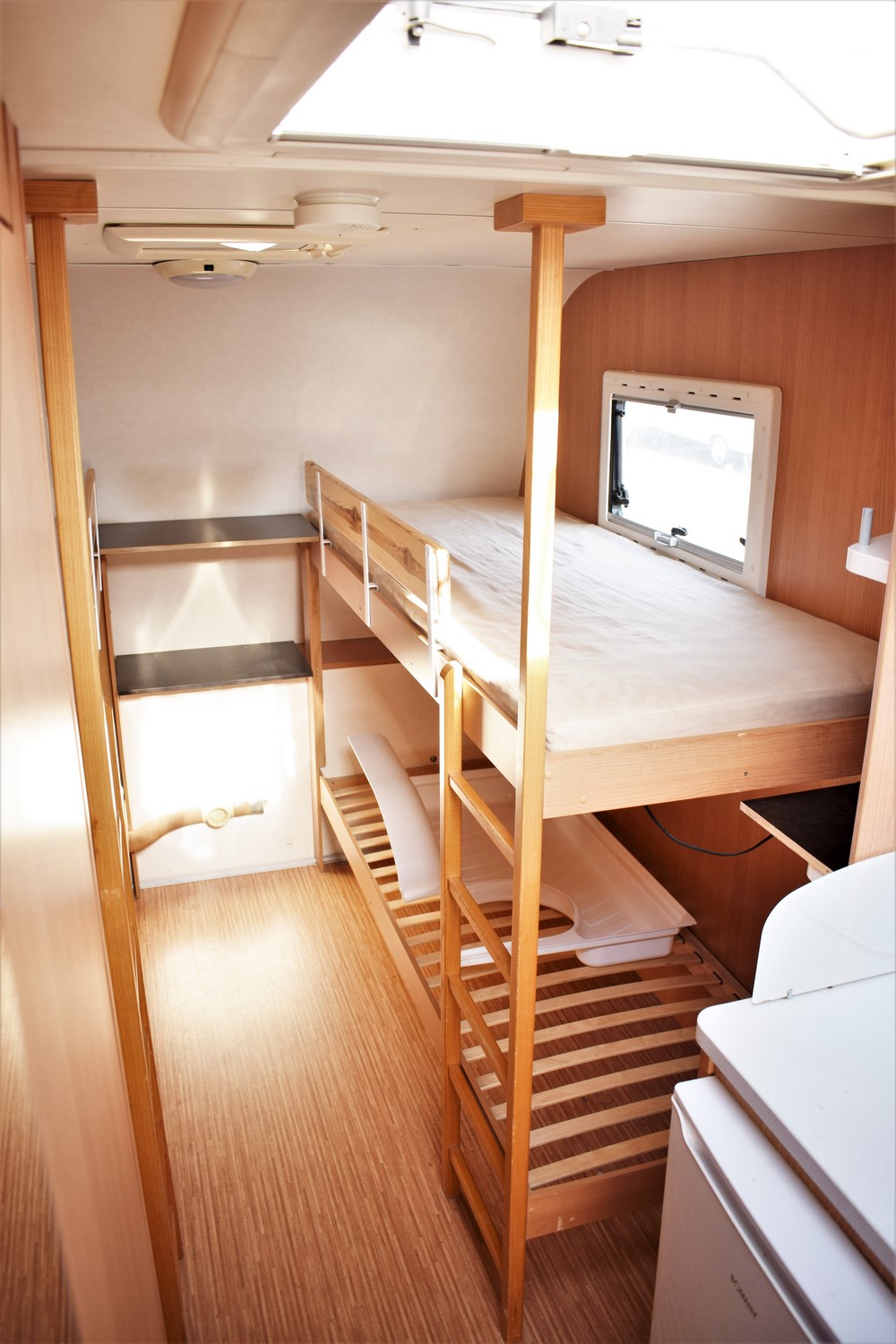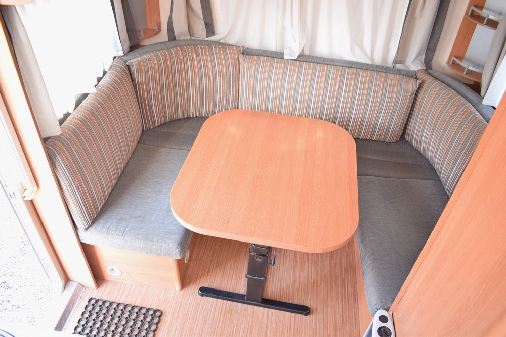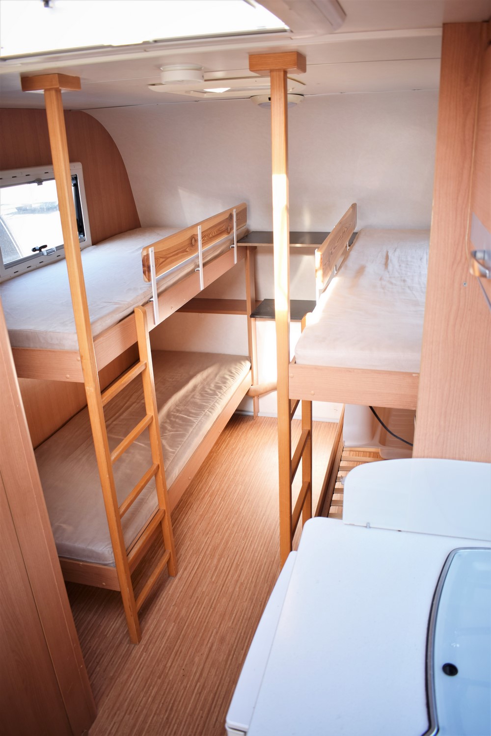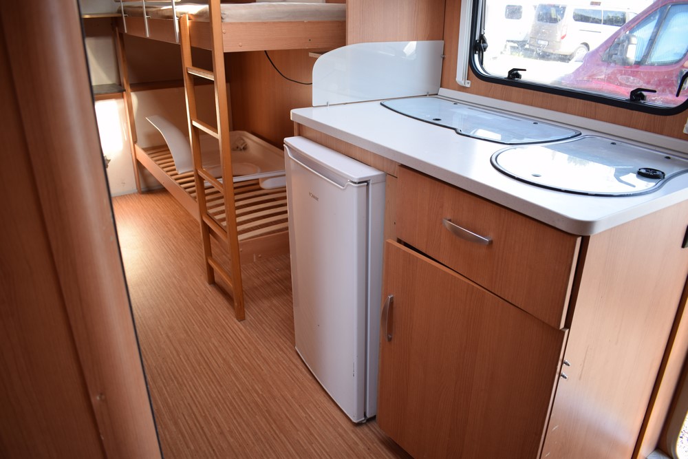 Šestilůžkový obytný přívěs s dvěma fixníma dvojpalandama. Rok výroby 2010. Vpředu je sezení rozložitelné na dvojlůžko, uprostřed je kuchyňka a koupelna, v zadní části jsou podélně umístěné palandy. Předchozí majitelé provedli v karavanu úpravy, koupelna sloužila jako šatna, momentálně není instalováno wc a sprchová vanička (jsou v karavanu, ale nejsou instalovány). Dále je instalována domácí chladnička na 220V.