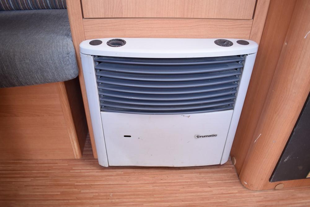 Ohřev vody: karavan je vybaven standartním plynovým topením TRUMATIC. Součástí elektrického topení je také rozfuk teplého vzduchu, který rovnoměrně rozvádí teplo do všech části karavanu včetně koupelny.