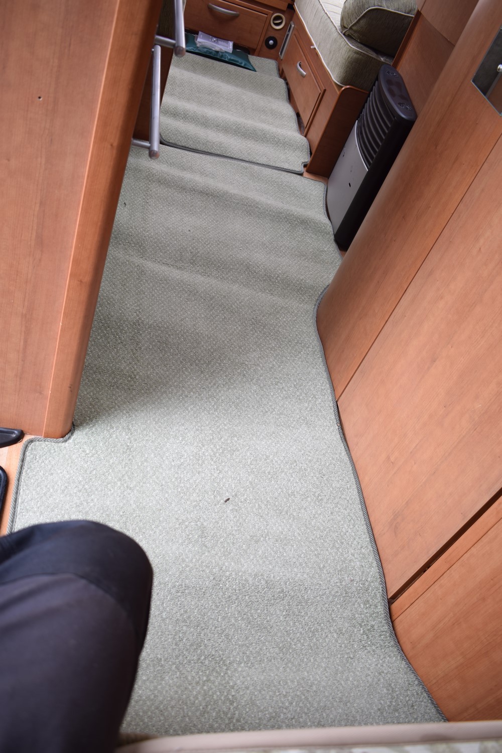 Čtyřlůžkový anglický obytný přívěs v pěkném stavu. Karavan s obdelníkovým fixním dvoulůžkem, samostatným sprchovým koutem, pojezdem na dálkové ovládání, odsavačem par, mikrovlnkou a mnoho dalšího. Rok výroby 2005. Vpředu je sezení proti sobě jednoduše rozložitelné na dvojlůžko. Ve střední části se nachází kuchyňka s kombinovaným sporákem, plynovou troubou a grilem, dřezem, mikrovlnkou, odsavačem par a ledničkou s mražákem. Naproti kuchyňce je koupelna se samostatným sprchovým koutem, wc a umyvadlem. V zadní části je fixní dvoulůžko s úložným prostorem.