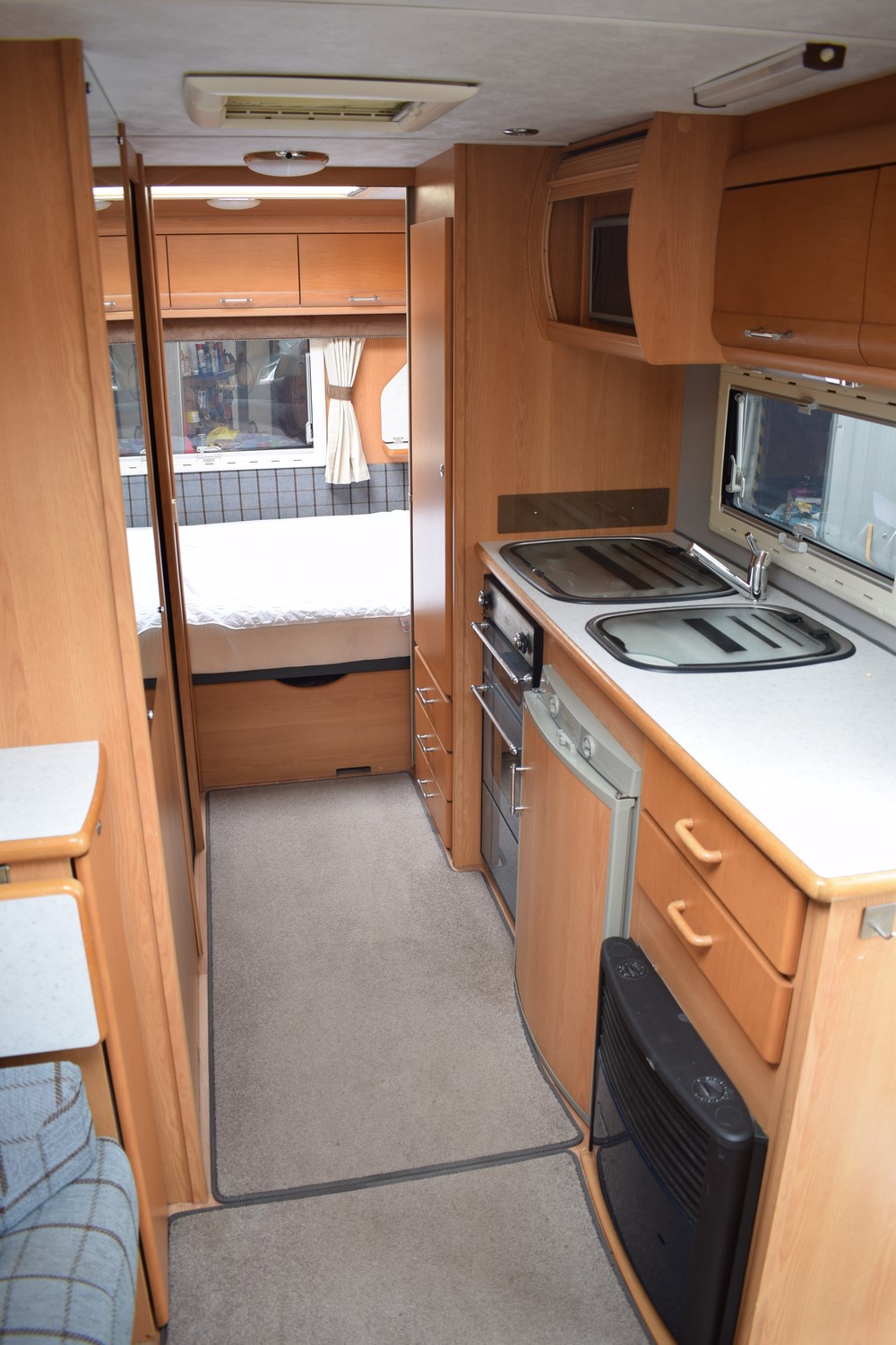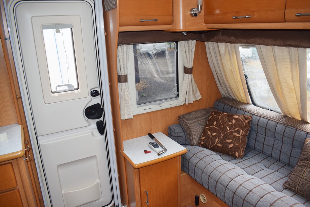 Velký luxusní čtyřlůžkový anglický obytný přívěs v krásném stavu, dřez, sporák je téměř nepoužitý. Karavan s velkou koupelnou a samostatným sprchovým koutem, předstanem, pojezdem na dálkové ovládání a spoustou dalšího vybavení. Rok výroby 2006. Vpředu je sezení ve tvaru písmene L, použitelné jako dvě jednolůžka. Ve střední části se nachází kuchyňka s velkým sporákem, plynovou troubou, grilem, dřezem, mikrovlnkou a ledničkou s mražákem. Naproti kuchyňce je oddělená koupelna se samostatným sprchovým koutem, umyvadlem a wc. V zadní části je fixní obdelníkové dvoulůžko s tlustou pohodlnou matrací. Pod dvoulůžkem je mimořádně velký úložný prostor přístupný zevnitř karavanu (postel se zvedá pomocí plynových vzpěr, a přístupný také zvenku, z obou stran jsou servisní dvířka. Celý karavan prosvětlují dvě velká střešní okna instalovaná v salonu a ložnici.