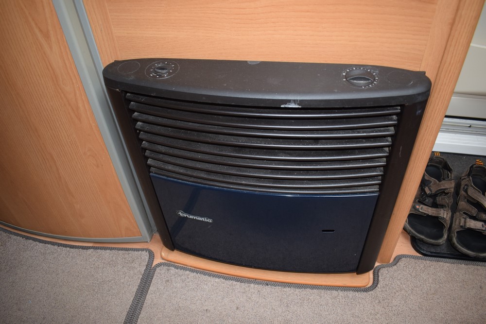 Topení: karavan je vybaven standartním plynovým topením TRUMATIC. V topení je navíc integrované elektrické topení Truma Ultraheat nastavitelné na 500W, 1 000W a 2 000W. Součástí elektrického topení je také pokojový termostat. Karavan je vybaven rozfukem teplého vzduchu, který rovnoměrně rozvádí teplo do všech části karavanu včetně koupelny.